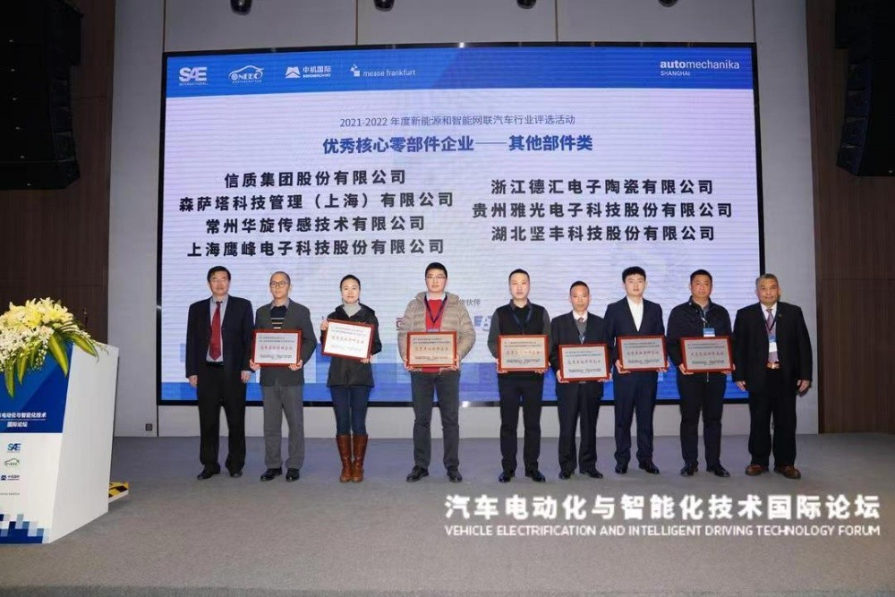 德匯電子應邀參加2022汽車電動化與智能化技術國際論壇。在論壇頒獎典禮上,德匯電子被授予優(yōu)秀核心零部件企業(yè)以及先進創(chuàng)新成果獎。主辦方代表新能源和智能網聯汽車行業(yè)感謝德匯電子通過持續(xù)創(chuàng)新,為新能源汽車IGBT模塊用AMB-Si3N4覆銅襯板做出的貢獻。我司總經理徐榮軍親自出席并登臺領獎,充分顯示了我司對此獎項的高度重視。