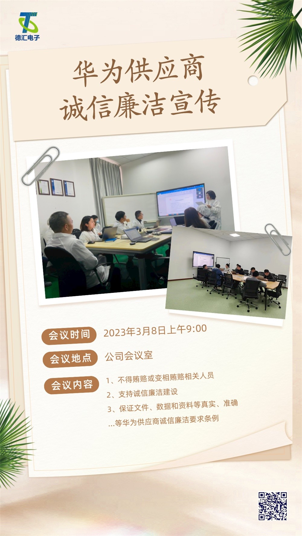 華為供應(yīng)商誠信廉潔宣傳 2023-03-08 15:39:56 浙江德匯電子陶瓷有限公司 瀏覽次數(shù) 1796 上一條德匯精益數(shù)字化智能制造項目啟動大會圓滿召開 下一條熱烈祝賀德匯電子被評定為高新技術(shù)企業(yè)